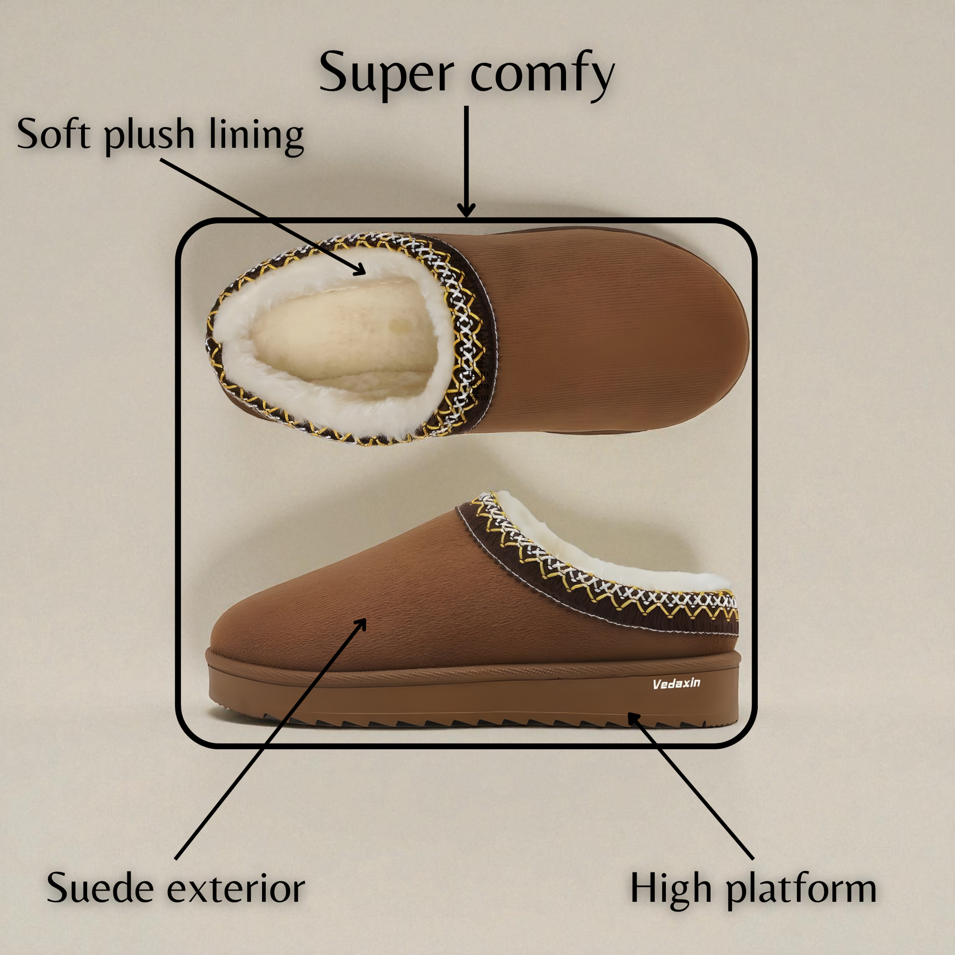 The fluffy wool-like lining warms and relaxes your feet. The platform provides pressure relief, and the non-slip sole keeps every step stable and secure. Designed for all ages—teens, adults, and seniors—Winter Ease brings real comfort without sacrificing style.